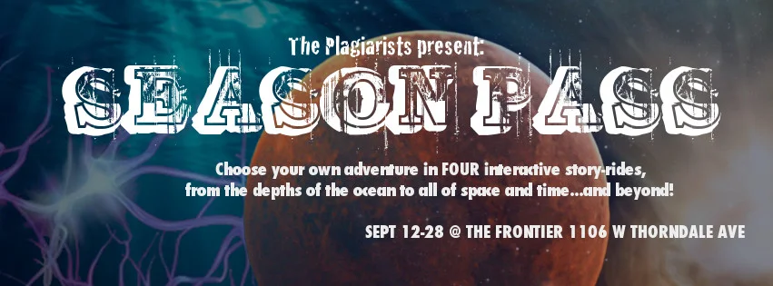 Think Be Kind Rewind crossed with Star Tours crossed with Choose Your Own Adventure crossed with a childhood spent watching too many cartoons. A twisted theme park created by a mysterious artist on the run from the law, Season Pass is a set of interactive story-rides where the audience chooses the course of the story. From the depths of the ocean, to all of time and space itself… and beyond, Season Pass will take you on a one-of-kind adventure every time you strap in!